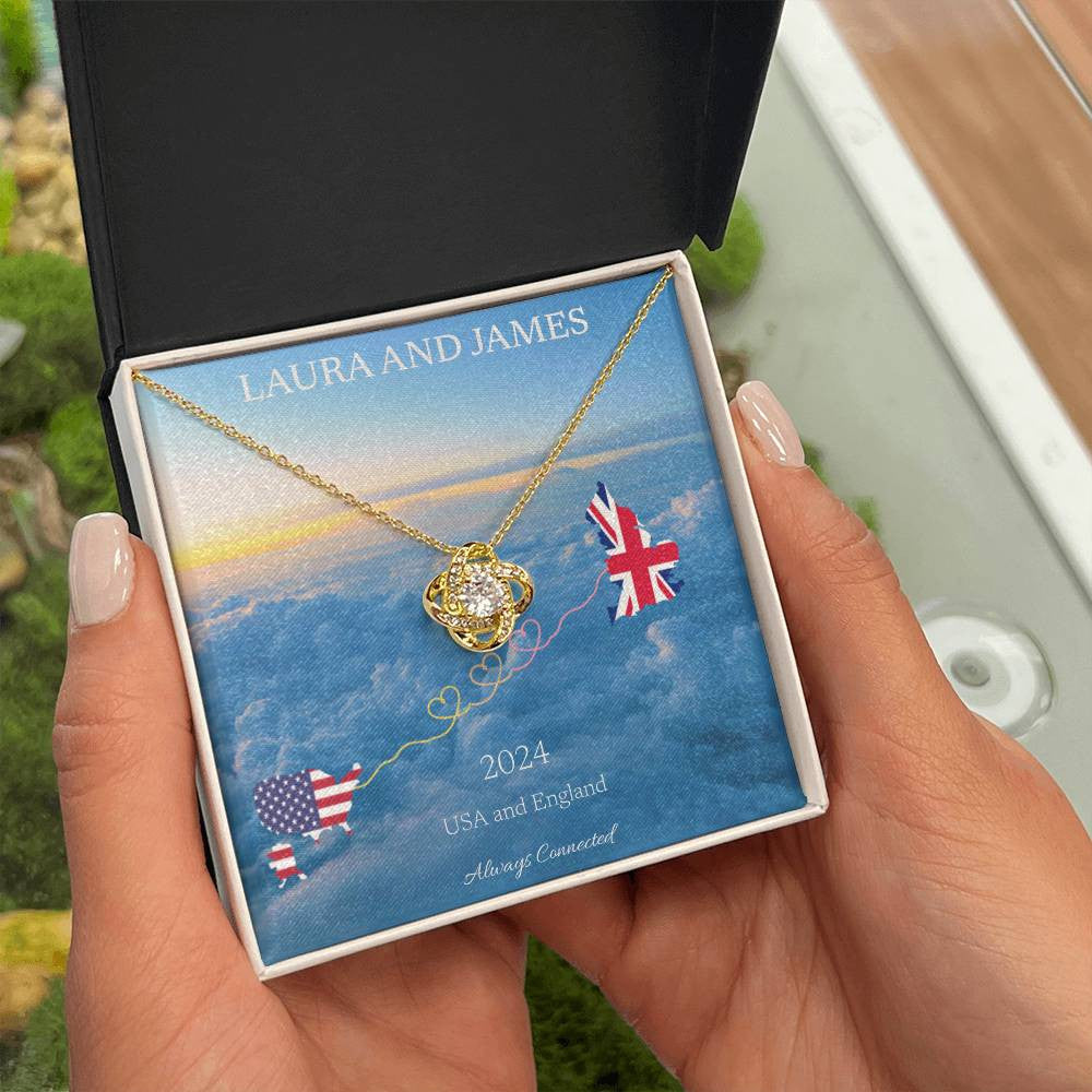 Personalized Luxury Love Knot Necklace - Long Distance (Yellow & White Gold Variants)