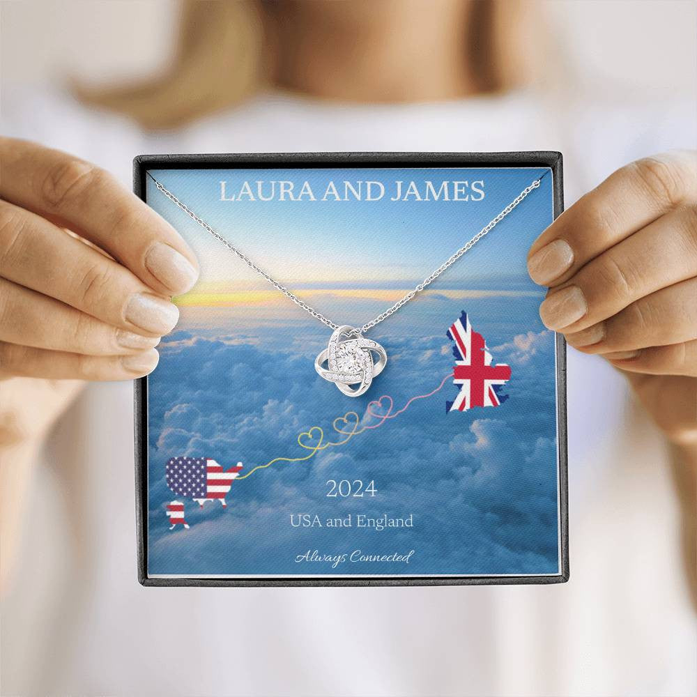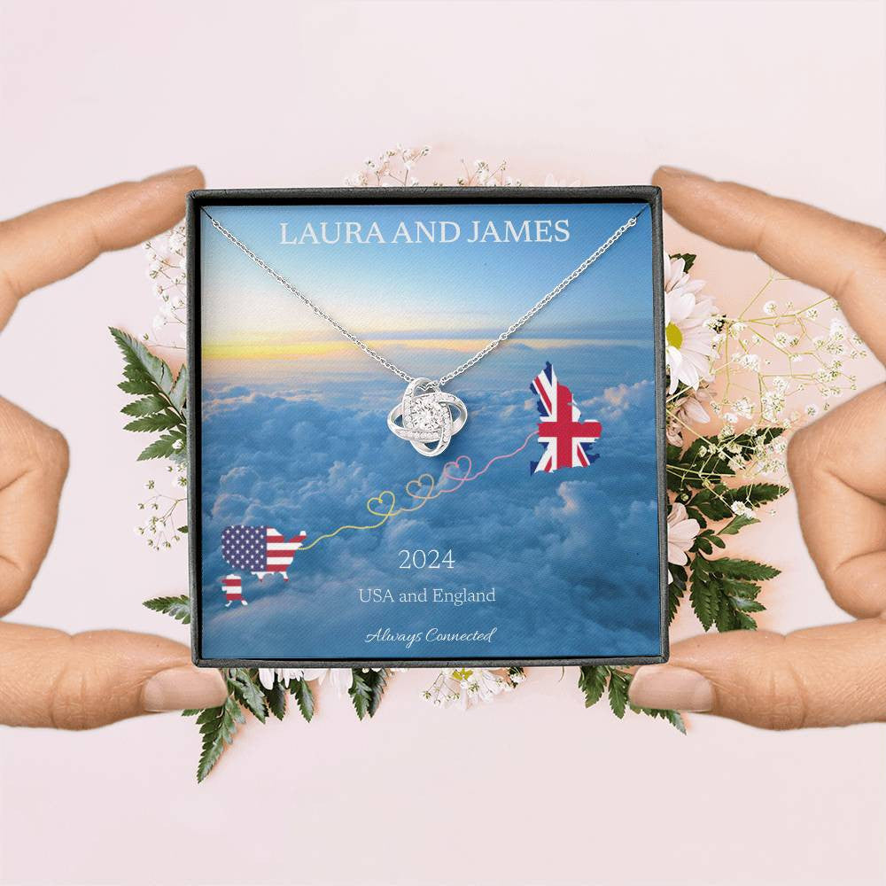 This beautiful Love Knot Necklace is the ideal gift for a friend or family members who is moving to another country. Life in a new country can be a daunting prospect - but this love knot necklace represents an unbreakable bond between two souls.